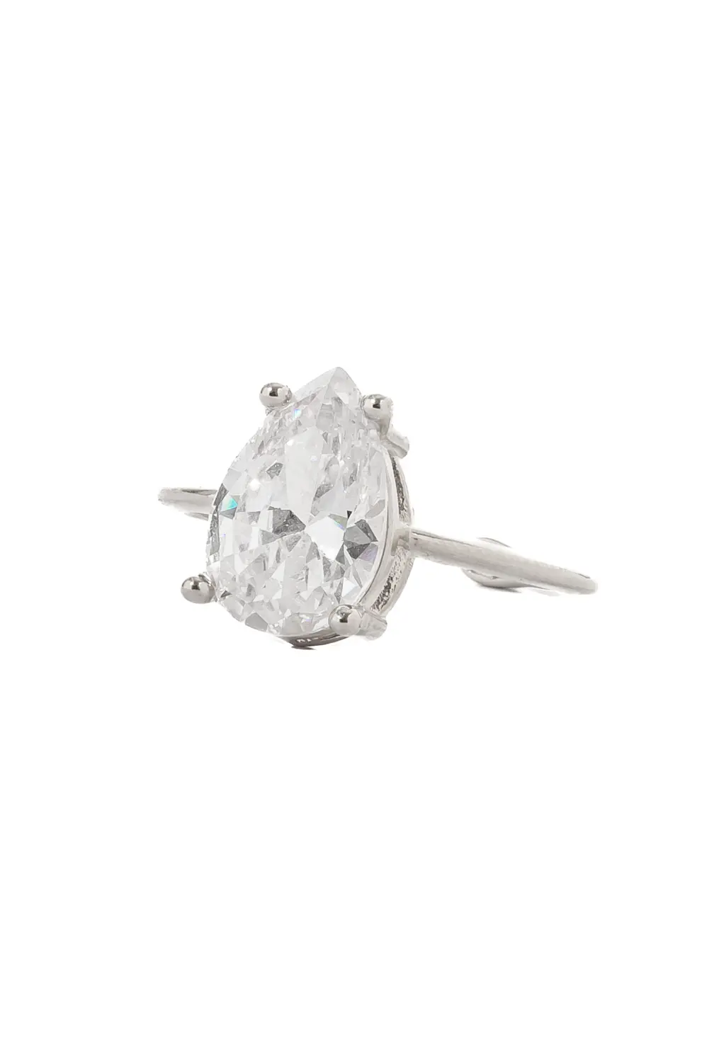 Anel Gota Zircônia Regulável com Banho em Ródio Branco
