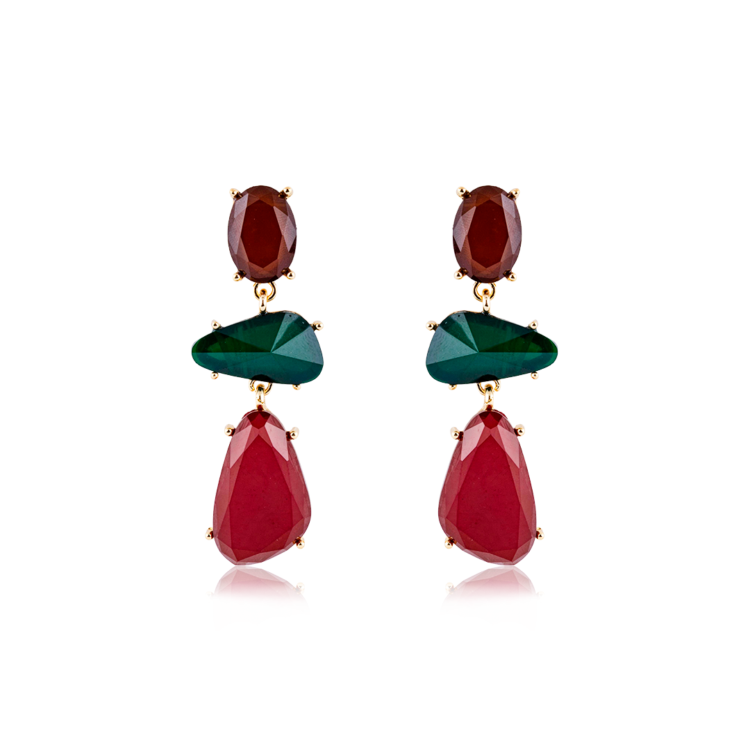 BRINCO BARBARA MARROM/VERDE/VERMELHO