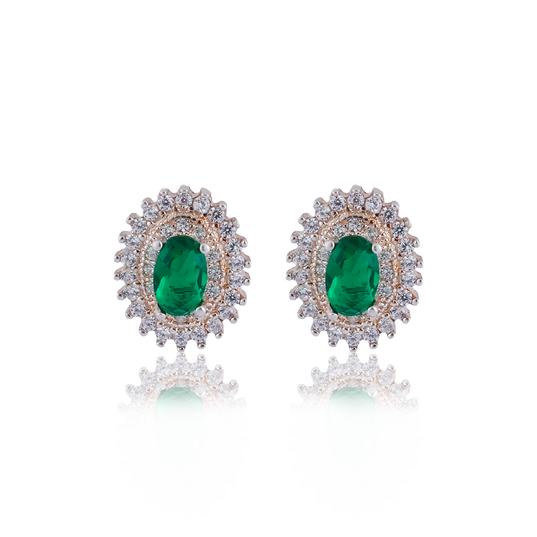 CRAVAÇÃO EM ZIRCONIAS CRISTAIS E PEDRA CENTRAL NA COR ESMERALDA