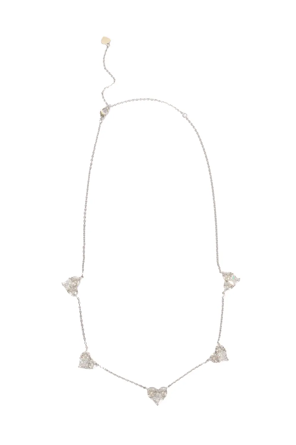 Colar Cinco Corações de Zircônia com Banho em Ródio Branco