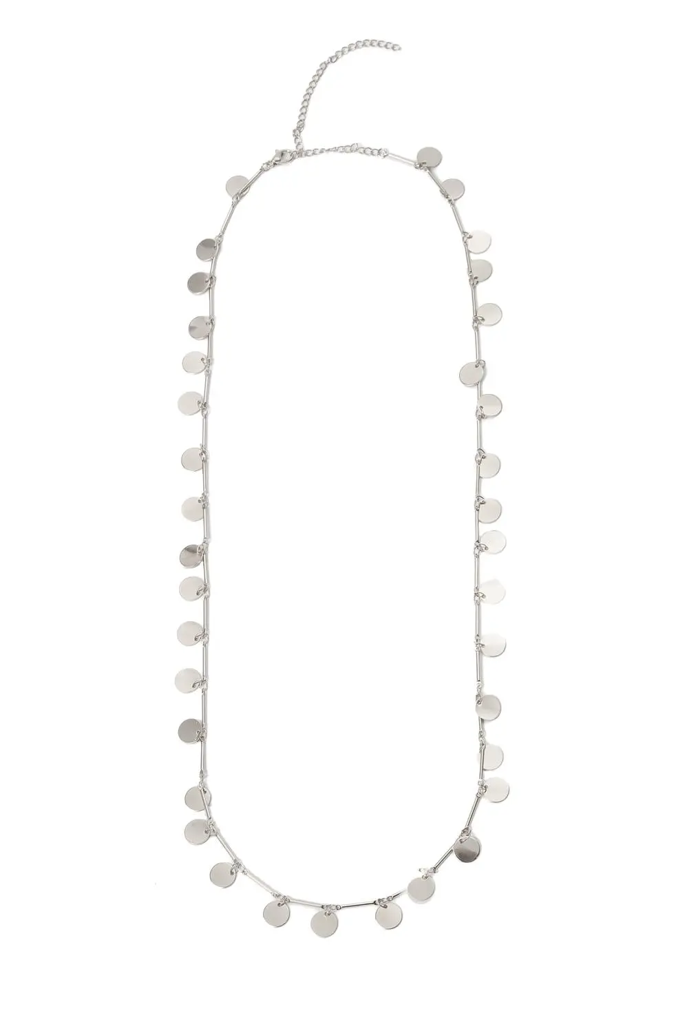 Colar Longo Medalhas Grande com Banho em Ródio Branco