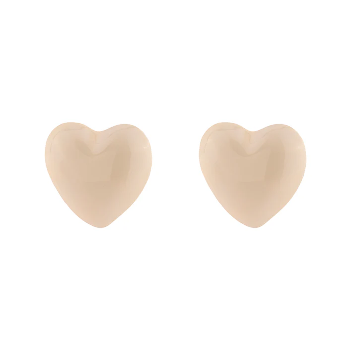 Descrição: brinco em formato de coração com base dourada e esmaltado branco